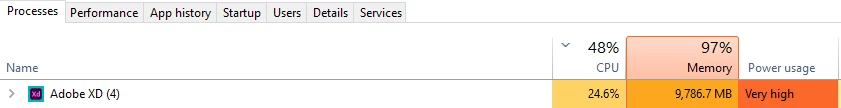 - Adobe XD is taking up to 30% of memory usage while auto saving.