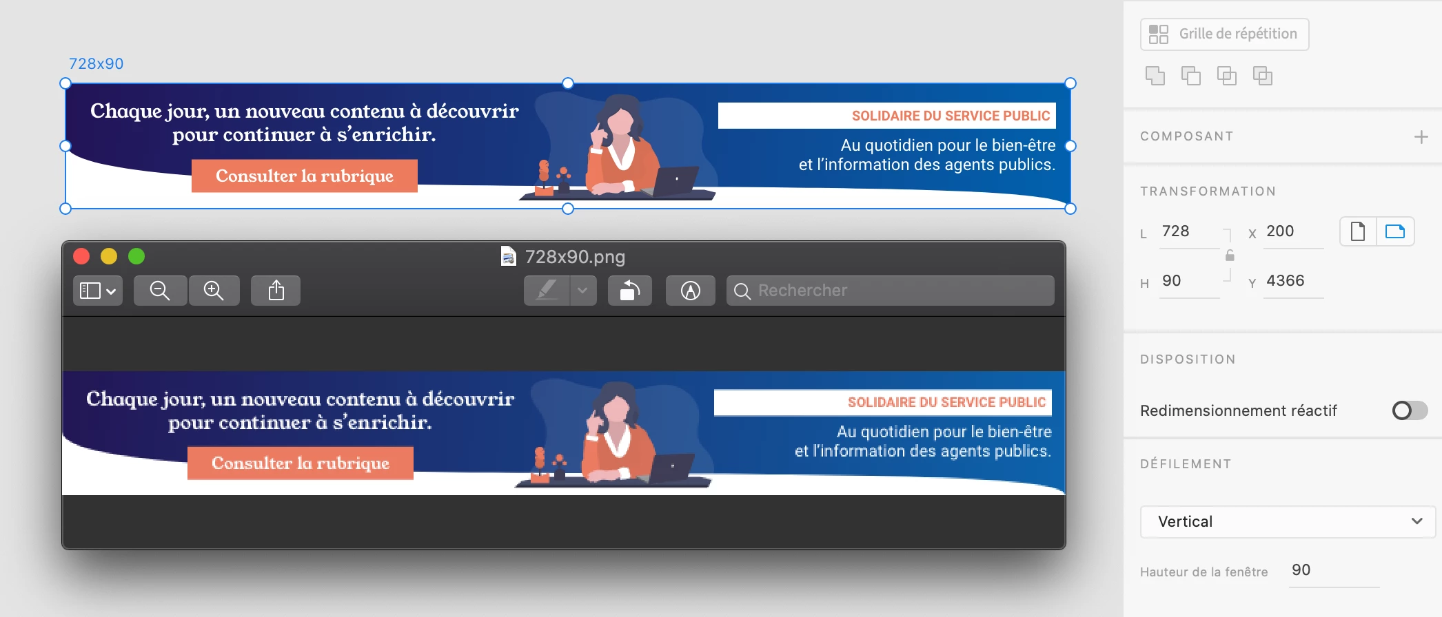 I have to do a banner 728x90 and my client asks me a HD version. I create my file in Adobe XD in 728x90 and when I export it for the web (1x), my banner looks really blurry ... I know that I can export in 2x but it modifying the dimensions in 1456x180 😞 I don't know how I can export it in HD without modifying the dimensions.