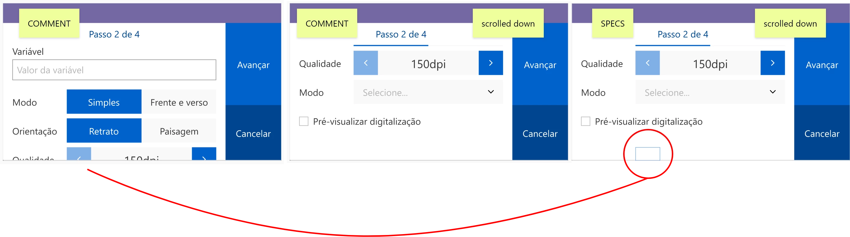 It happens that the handoff link doesn't work well with scroll groups. When in COMMENT panel, the developer can navigate in the prototype and scroll the group down. When changing to SPECS panel and try to inspect the elements, the mouse pointer identify things in the original position. When changing back to COMMENT panel, the design get's back to the original state (scroll grupo reset at the top).