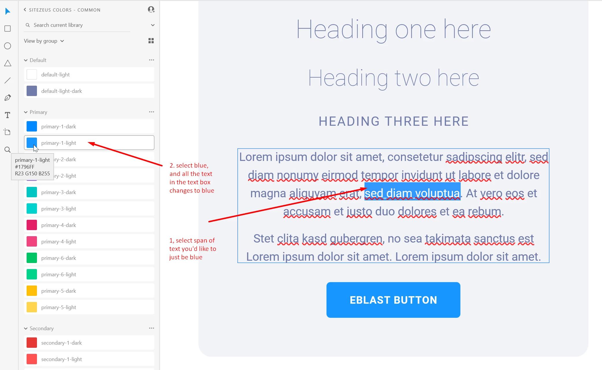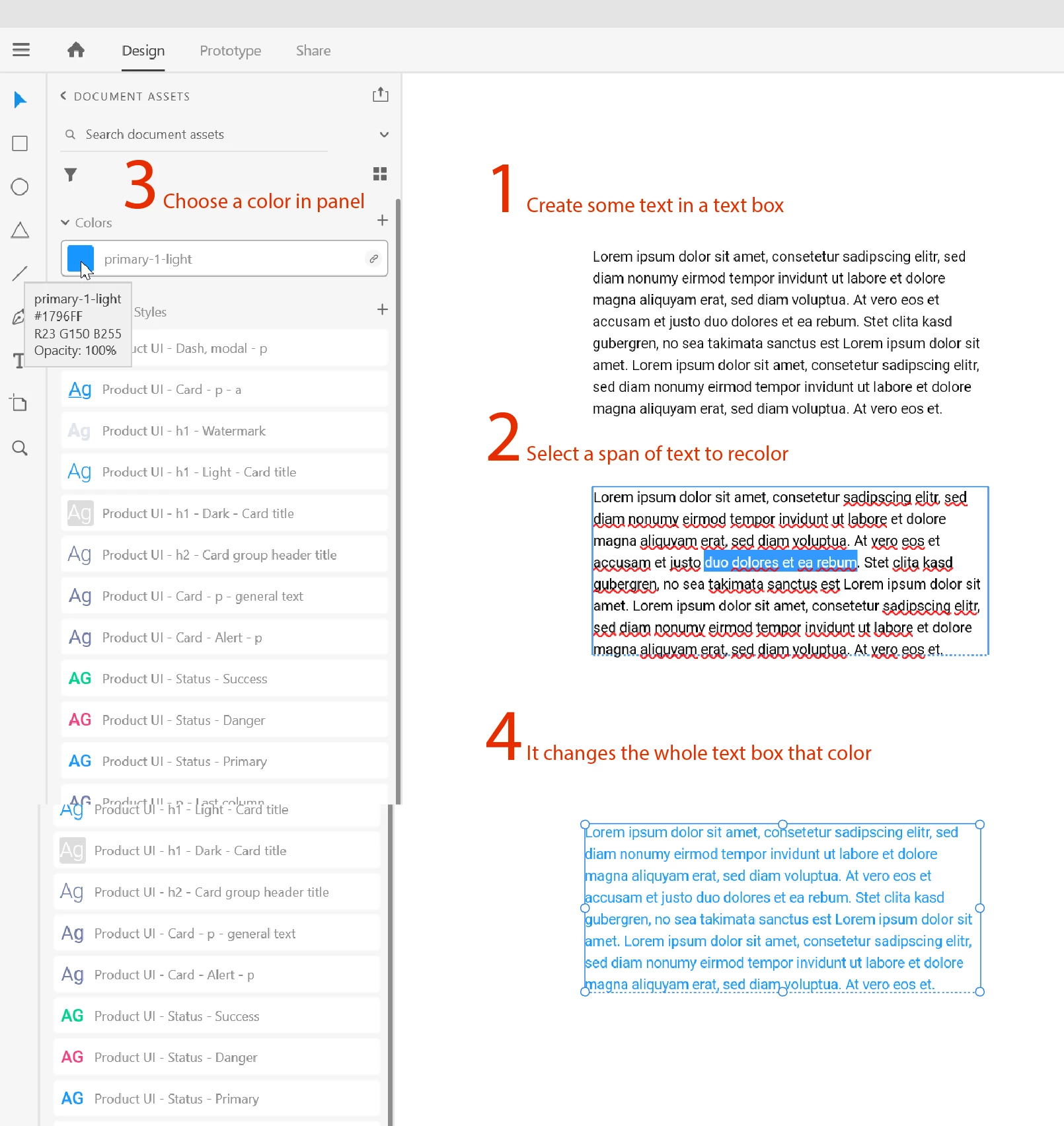 Some text needs a different colour (links). However the the focus of the text needs a double click to then be able to apply a colour. The colour is then not assigned to the highlighted part.