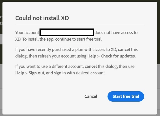 Can't get Adobe XD Starter Plan on my new laptop