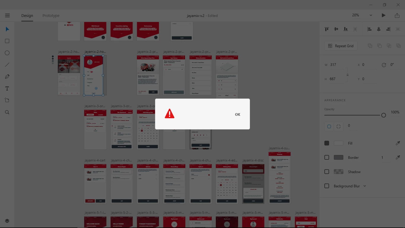 Sometimes, I couldn't save my project and got this dialog. No text no hint, just a warning icon and an OK button.