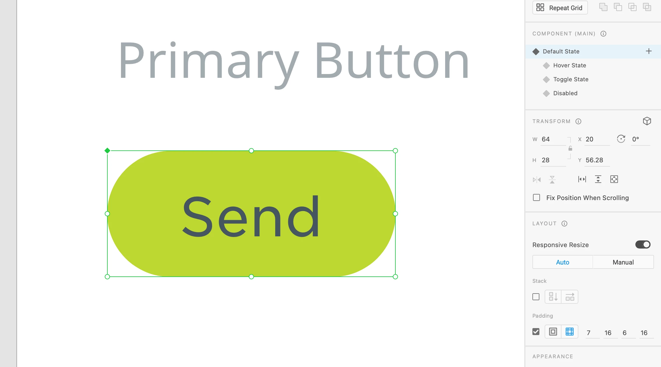 If it is not responsive I can center text manually and the spacing becomes 6.5 both top and bottom. But in responsive I cannot give decimal point padding. We can not change button sizes just because of this. Tried it in Figma, it has no issues creating decimal padding. I also played with line height but that doesn't help in XD.