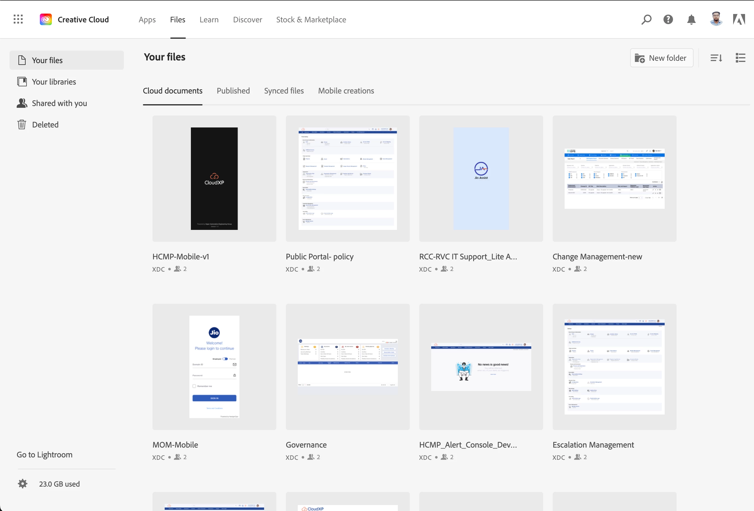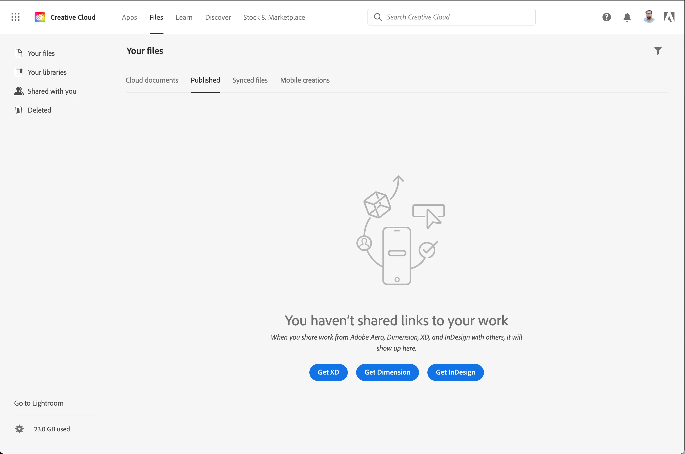 but whenever I click on manage Published links, the app send me to adobe creative cloud wit a page showing
