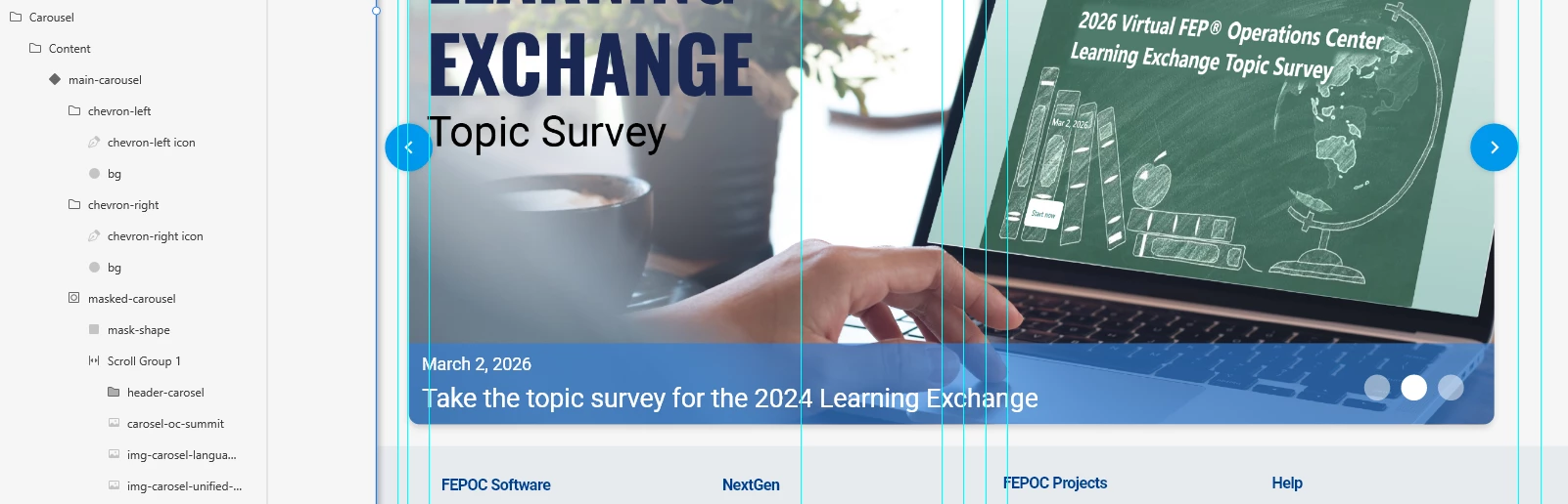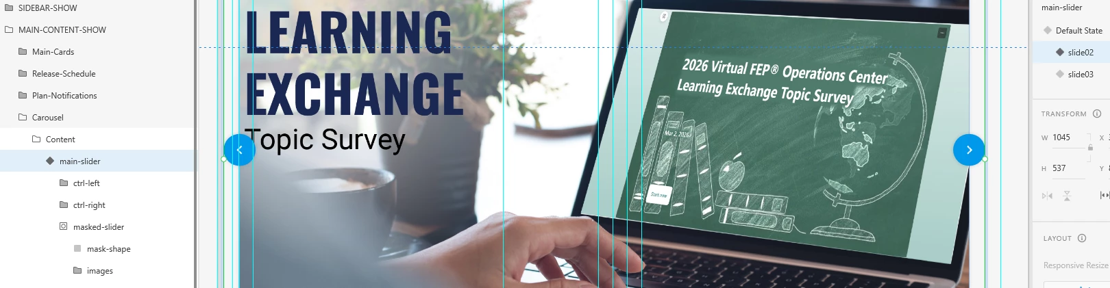I know I have the layer order wrong. The carousel works on click of the left and right controls, but I also need a hover state for those controls.