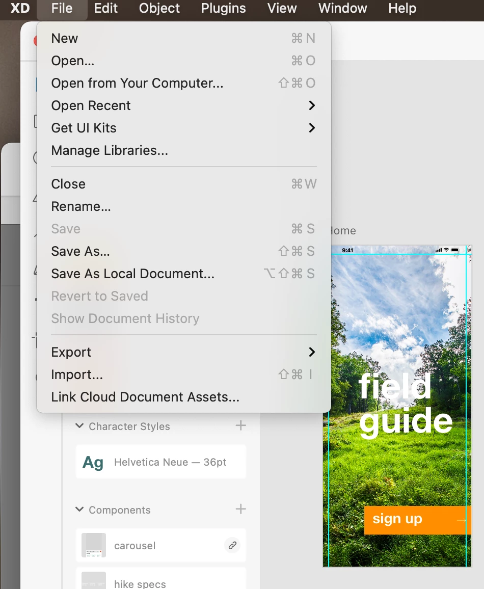 I'm learning to use XD with the approved Classroom In A Book for XD from Adobe. All going well until I reached the section on adding assets to a Creative Cloud Library. It says to go to File and then Open CC Libraries but if I have a document open this doesn't appear in the menu and if I just launch XD it appears in the menu but is greyed out. How do I get the panel to load? The section deals with adding an asset from an XD document to a library. It's doing my head in...