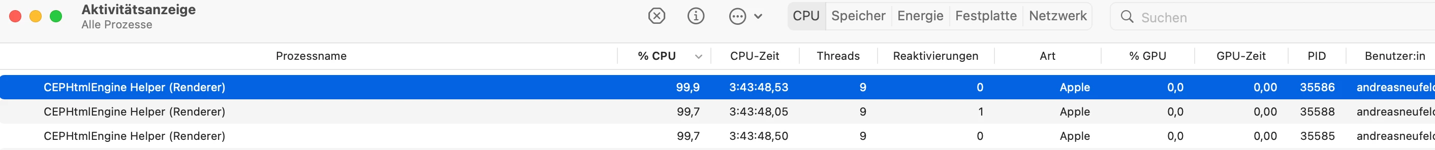 Every since I closed Xd my Macbook went absolutely crazy with the fan loudness and speed. The battery was about 5 times faster then when I am rendering multiple videos, 3D-images, exporting Photoshop and am using 4 Adobe Applications at the same time. Is this some sort of background-rendering done for other adobe clients on my hardware without my consent? Once I let the fan run for 3 hours and nothing was changing for the better I just force closed all these 3 CEPHtmlEngine Helper processes and instantly the fan noise cooled down and the battery is not draining within literally minutes! What's up with this?