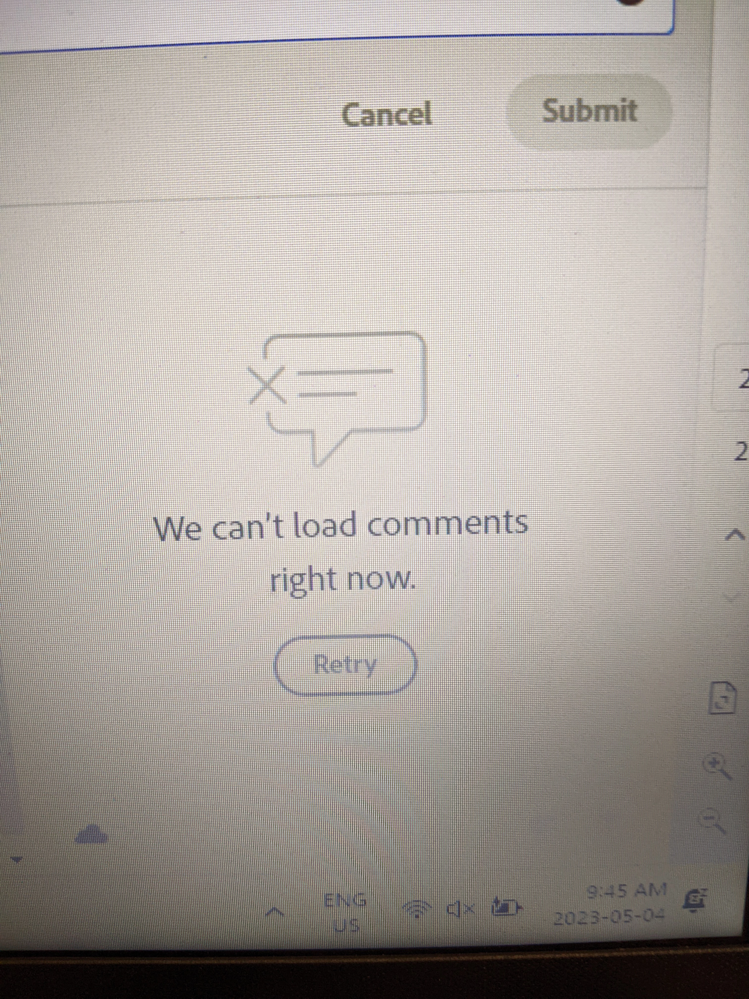 My client informed me that he used the pencil icon to add some markups on his proof then he input some comments. He hit the Submit button and the attached was the error he received. He says he left and came back a couple hours later and tried again and the same thing happened. I haven't had this happen to any other clients. Anyone else?