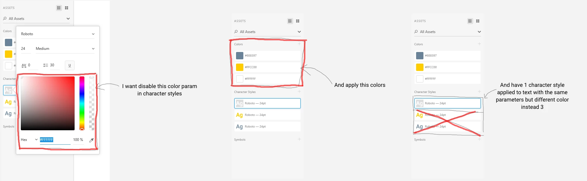 Can I create a character styles in assets without applying color?