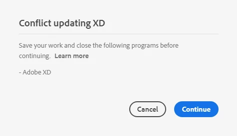 This old friend has started to appear again. As usual there's no XD open or found to be active in any background process in Windows. As usual rebooting Windows does not help. I have NO Adobe application open. There are NO Adobe applications active in the task manager. It's about time someone in the Adobe XD team took a long hard look at this issue.