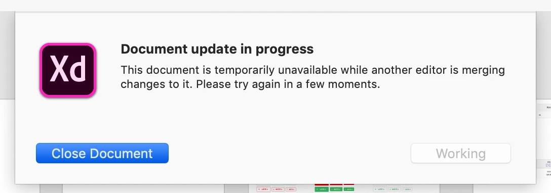 I wonder why does XD say "another editor is merging changes to it." even though no one open the file.