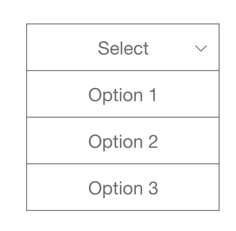 I'm wanting to create a drop down that has hover effects on each of the options but also you can tap on whatever option you choose. So far I've made the below components : Select, Option 1, Option 2 and Option 3.