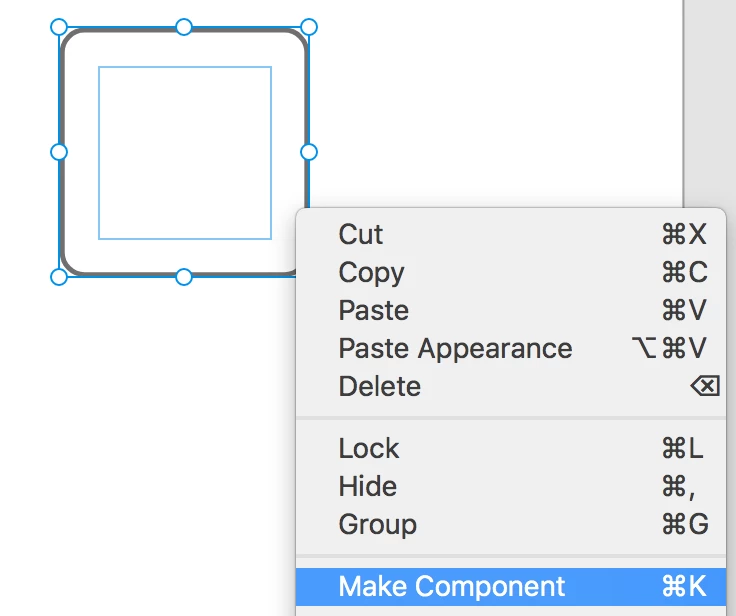 With the inner square selected, press Ctrl+K or Cmd+K to convert the inner square to a Component. Name the Component InnerSquare
