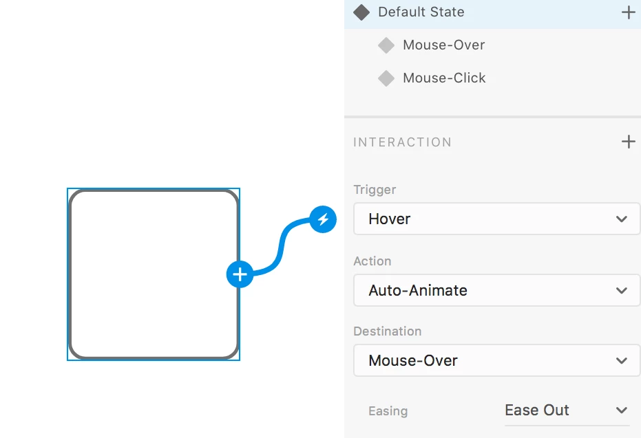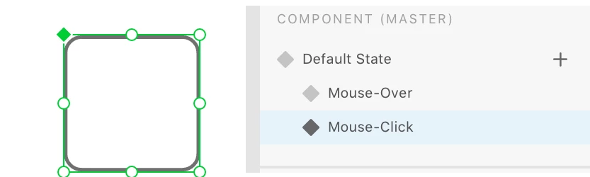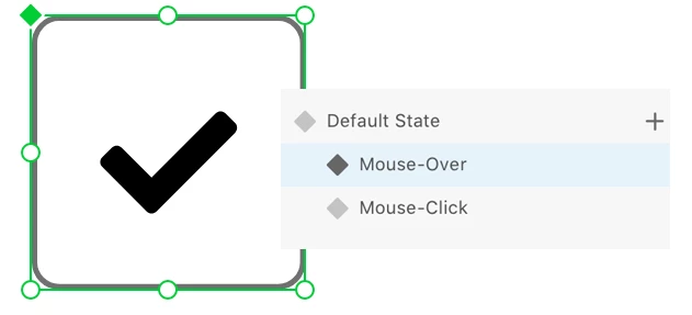 Select OuterSquare component and in the Properties panel, create two new states, Mouse-Over and Mouse-click
