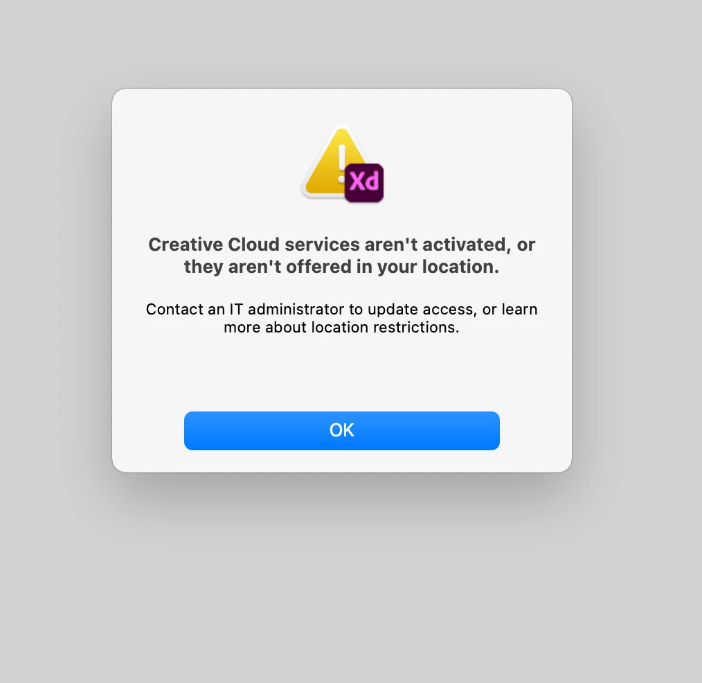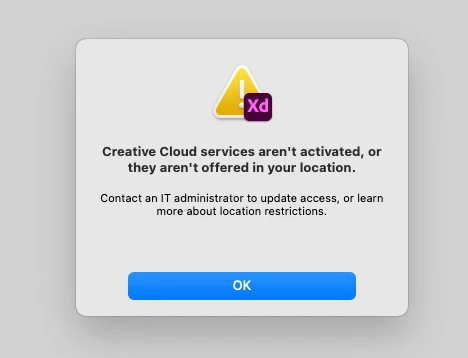 "creative cloud services aren't activated or they aren't offered in your location" error