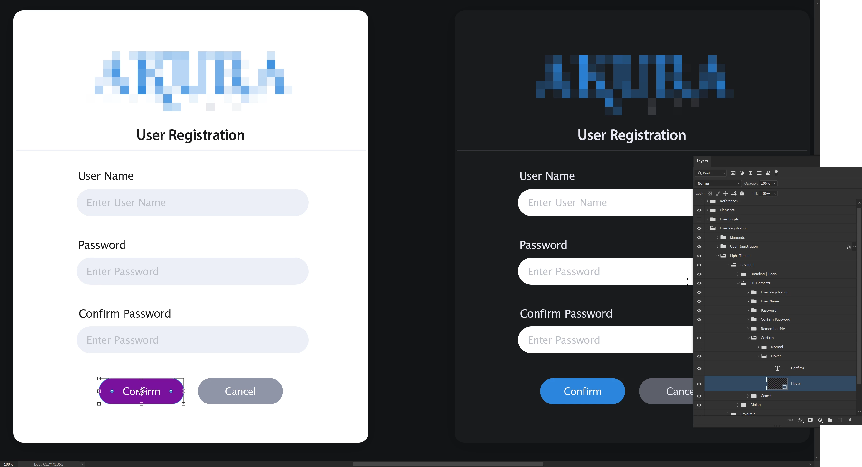 I created my application GUI within Photoshop, I know how to import the contents into XD. The problem is, that the buttons I created with their own (normal / hover) states already created.