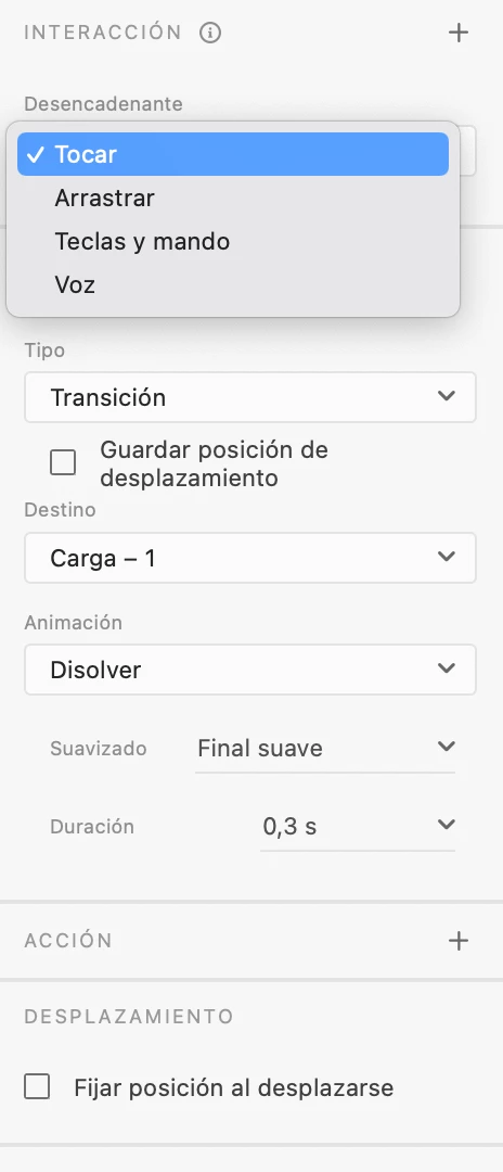 En la sección de prototipado dejó de aparecer la función de agregar interacción por tiempo.