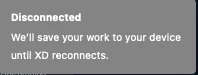 My colleagues and I have for about 2 weeks been unable to work in shared Adobe XD Cloud documents. Whenever we open up a shared XD CC document, it instantly shows the "X" over the cloud icon in the document header, and we get a prompt saying "Disconnected. We'll save your work to your device until XD reconnects".