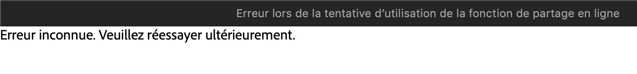 Le lien publique affiche : Erreur inconnue. Veuillez réessayer ultérieurement…