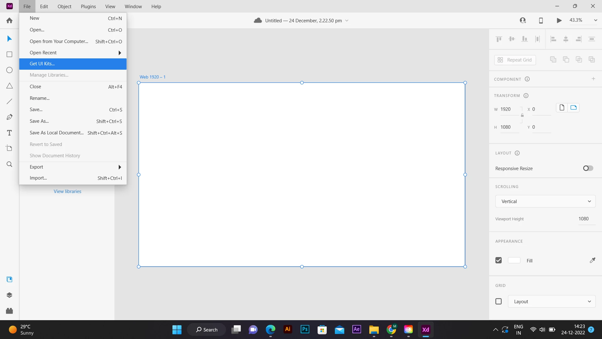 MMinal AgrawalParticipantForum|Forum|3 years agoDecember 24, 2022QuestionError 404 in XD 55.2 versionForum|Forum|3 years agoDecember 24, 20221 reply264 viewsClicking on the get ui kit from menu in adobe xd, leads to adobe Error 404 homepage, I am a student and learing adobe xd and I dont know how to use please help
