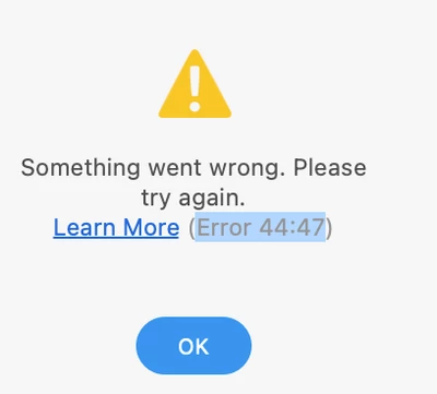 Some variants of this error message: Error 44:47 and 44:23, 44:63