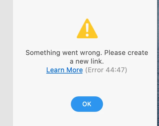 All I did was update the software and it will not allow me to share anything anymore. I have not changed my system or the art on the XD document. I keep on getting Error 44:47. I looked at the “Troubleshooting by error codes” section on your site, and do not understand the first step at all (way over my head). Again, the art is the same, it is a single page and I had absolutely no difficulty sharing prior to this last update....need help and need it ASAP please!