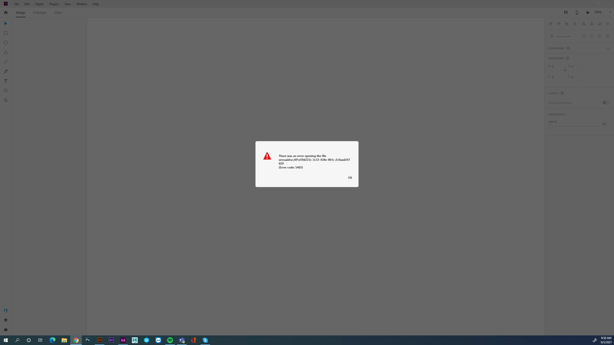 In addition to the performance problem again there is an one more issue while opening an Adobe Xd. Please find below the screenshot.