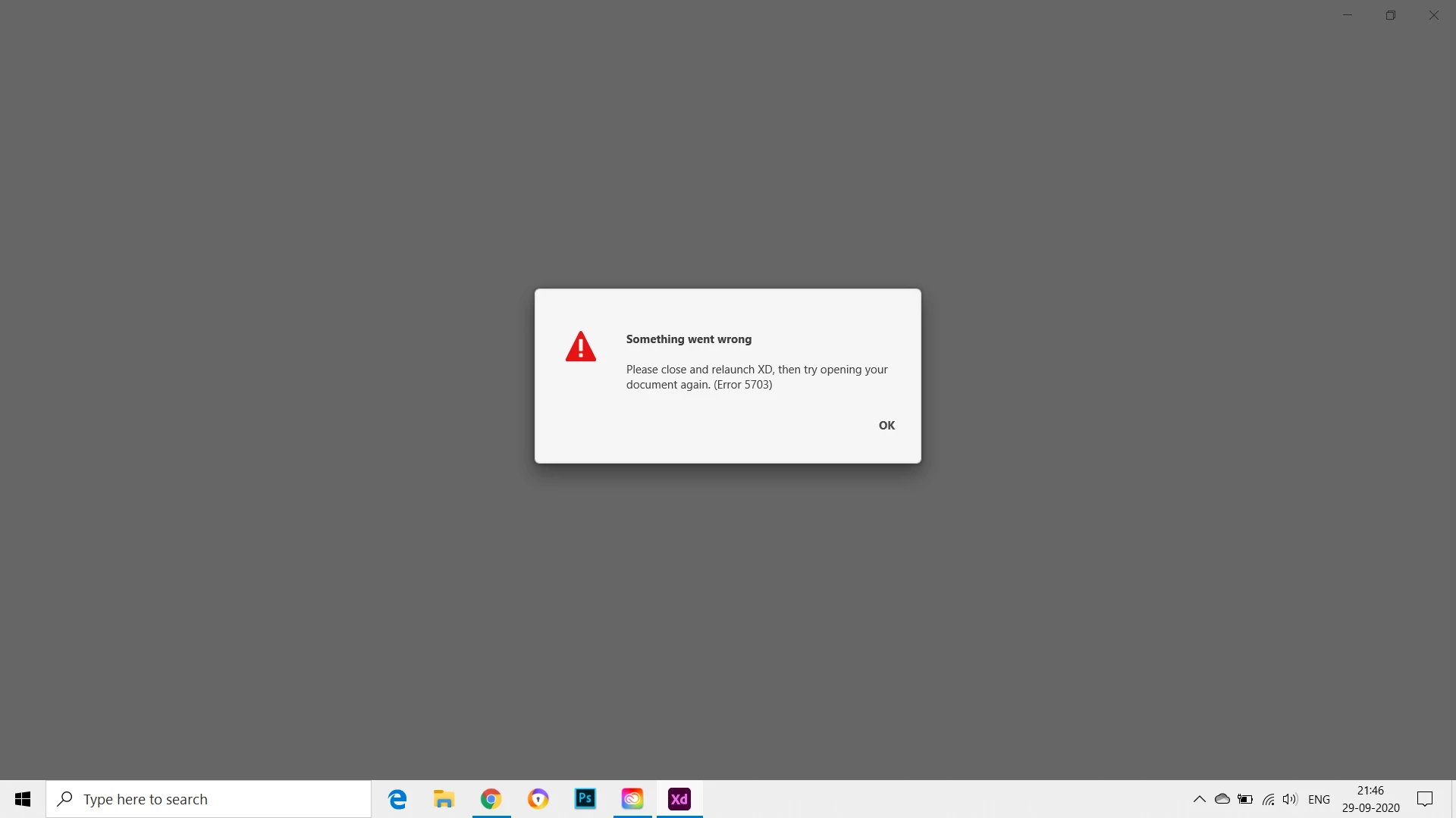 Hello sir/mam, I have just recently updated Adobe XD on my laptop. When I try to launch the Adobe XD. It is showing some errors like, Something went wrong - please close and relaunch XD, then try opening your document again. Error 5703. Please rectify this error, I need this software urgently.