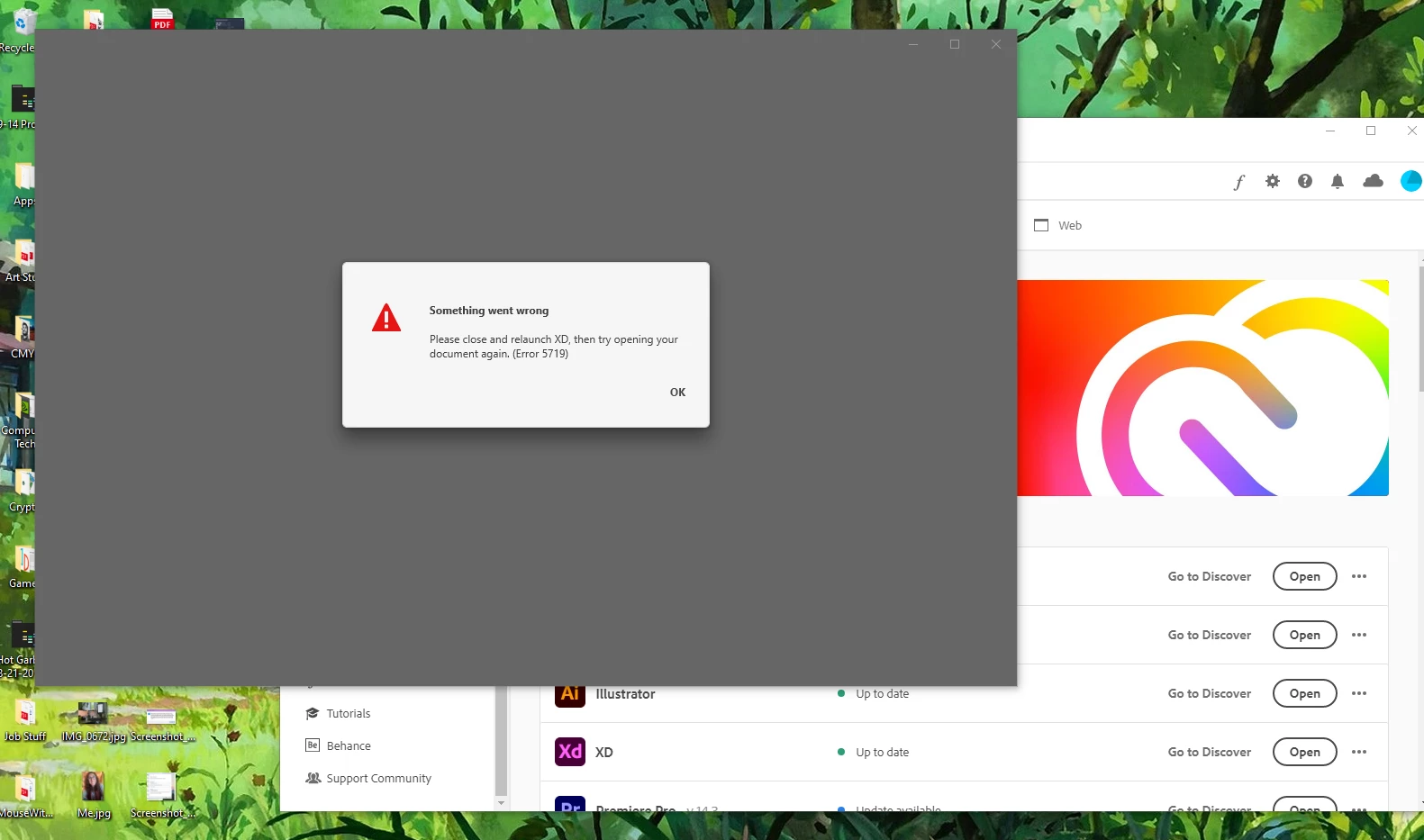 Please Close and Relaunch XD, then try opening your document again. (Error 5719)"