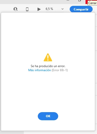 Error code 69:-1 while creating a link to share in Adobe XD.