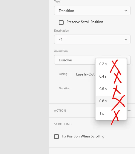 I have a problem with Adobe XD, which is my inability to change the values in duration and delay in prototype permanently