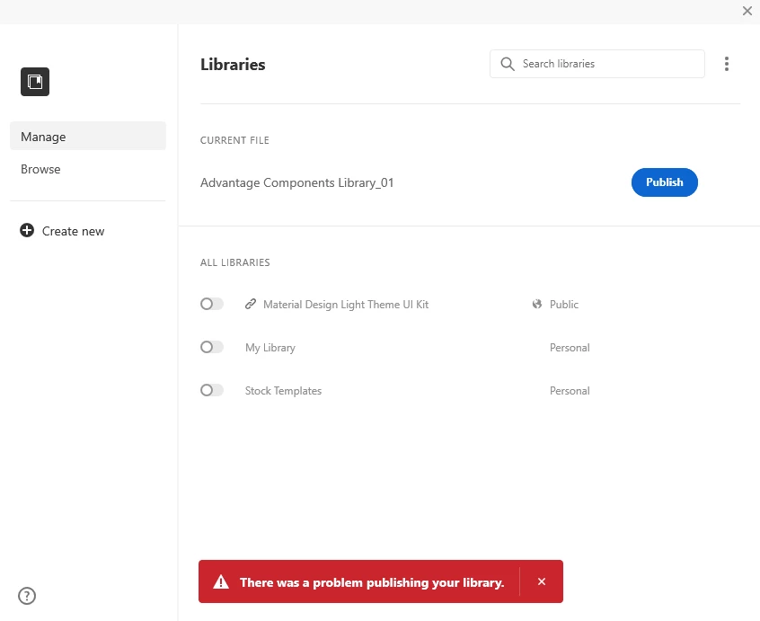 I am facing an issue while publishing library. The error show "There was a Problem publishing your library"