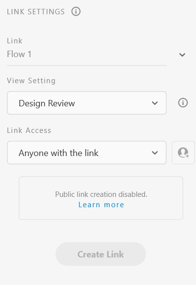 Error- Public link creation is disabled and unable to create link in XD