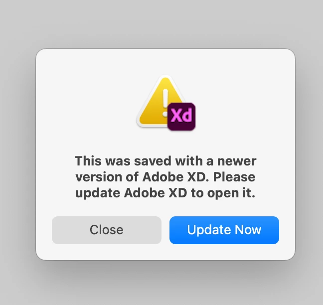 Error: This was saved with a newer version of Adobe XD. Please update Adobe XD to open it in XD 44
