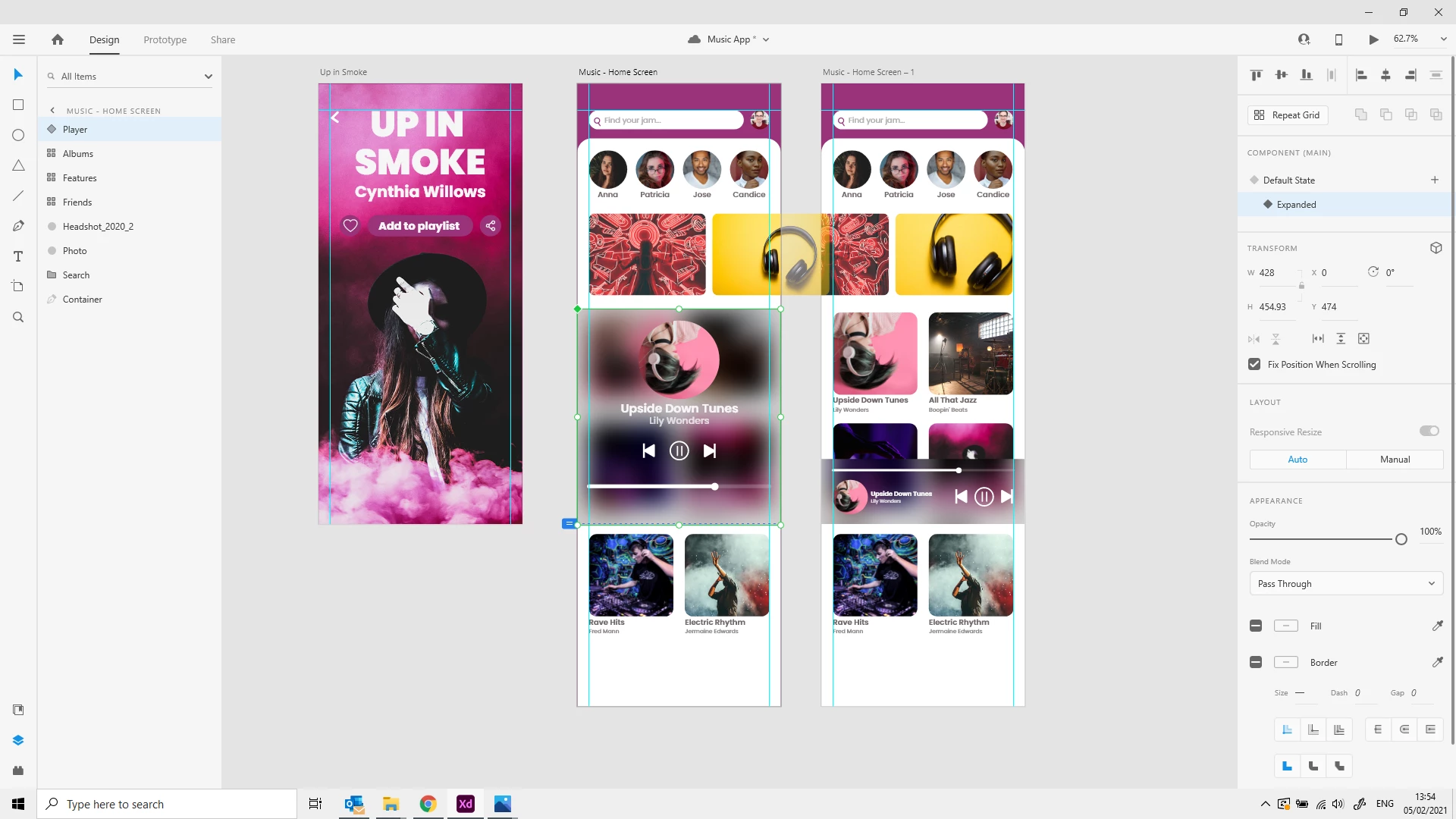I'm trying to replicate the music app tutorial you get when you download Adobe XD, but I'm now stuck on the last step. I'm supposed to make the player expandable by creating a component.