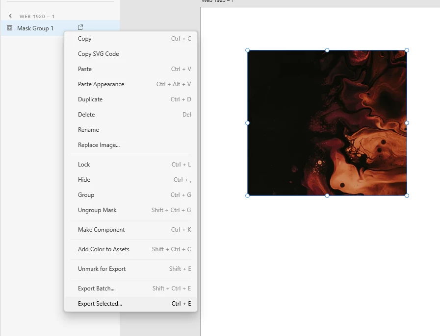 If you just want to export the image manually, you can select the Mask Group, right click, and select "Export Selected":