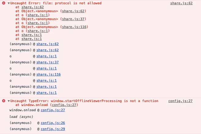 After viewing and reading tutorials on how to share a prototype built in XD I have attempted to perform the steps on my own project but just get a blank screen and console errors when I attempt to open the index.html file in my browser. I am using the latest version of XD Enterprise.