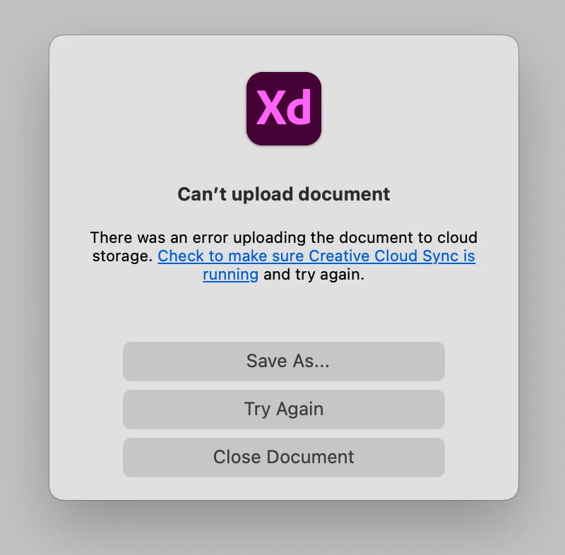 But as soon as Creative Cloud tries to save the file I'm met with a "Can't upload document" message and the files are considered as "waiting to sync", as shown on my screenshots. After that the file itself can't open anymore since CC tries to save it first.