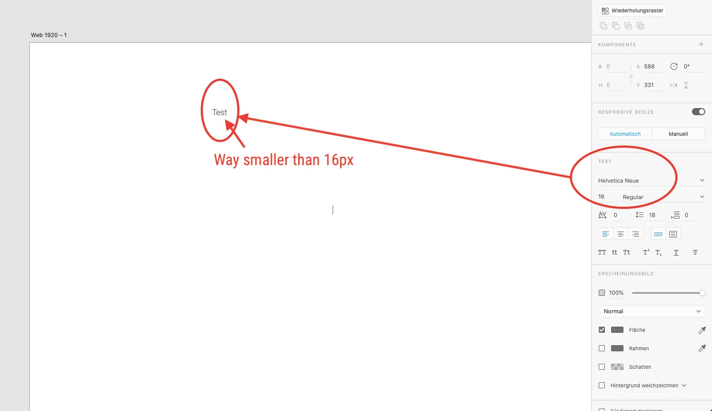 So when I'm writing text in adobe xd and set it to 16, it's a lot smaller than 16 pixels. When I try to open the presets, it doesn't work, the menu is not clickable.