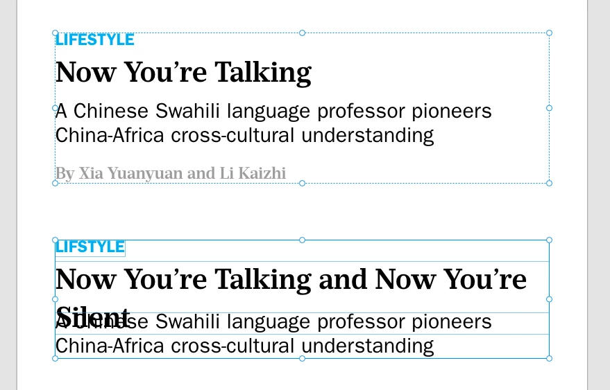 In the first example, if all of the paragraphs are in the same Area, longer headlines will push down the text below.
