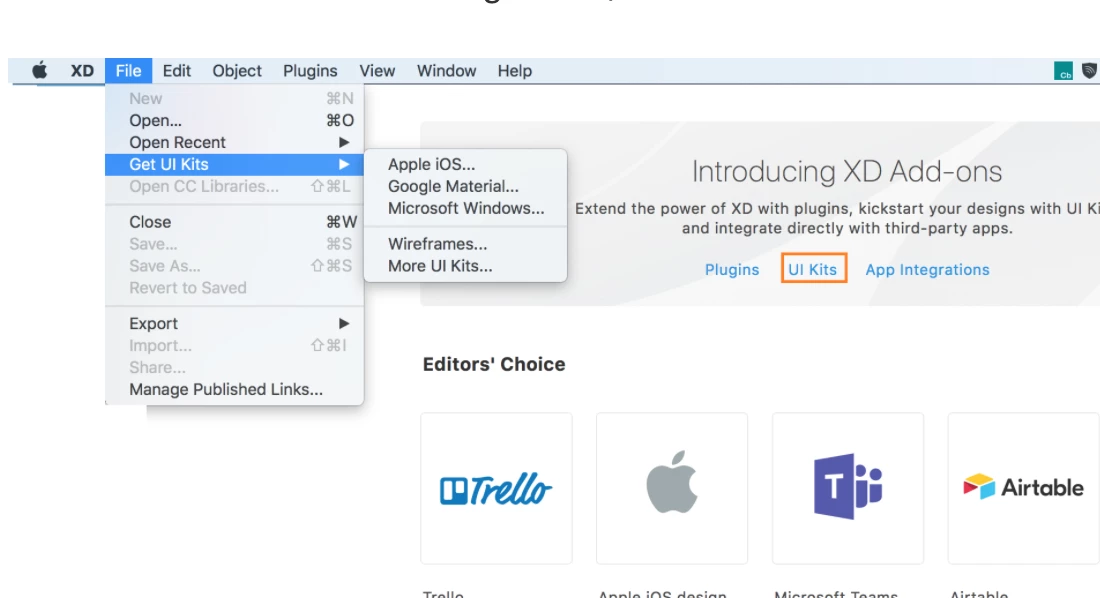 Hi. I am just starting out in XD, and the tutorials show an option to "Get UI Kits" with an arrow next to it, but my navigation does not show an arrow. When I click on "Get UI Kits" in the navigation it just takes me to this page: https://helpx.adobe.com/xd/help/access-ui-kits.html#panel-3
