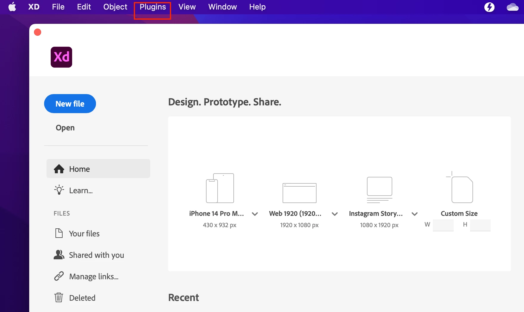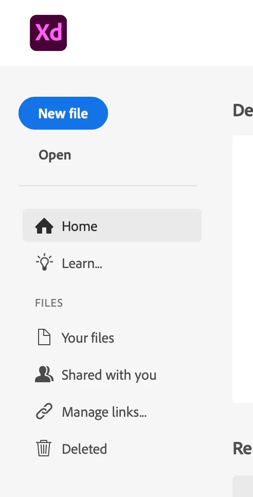 In additon, if you look at the 2nd screen shot here the page behind the nav shows all the "XD add-ons." I understand from watching tutorials that option should show up on the main screen in XD when you want to open a new file. Mine does not (see screen shot #3).