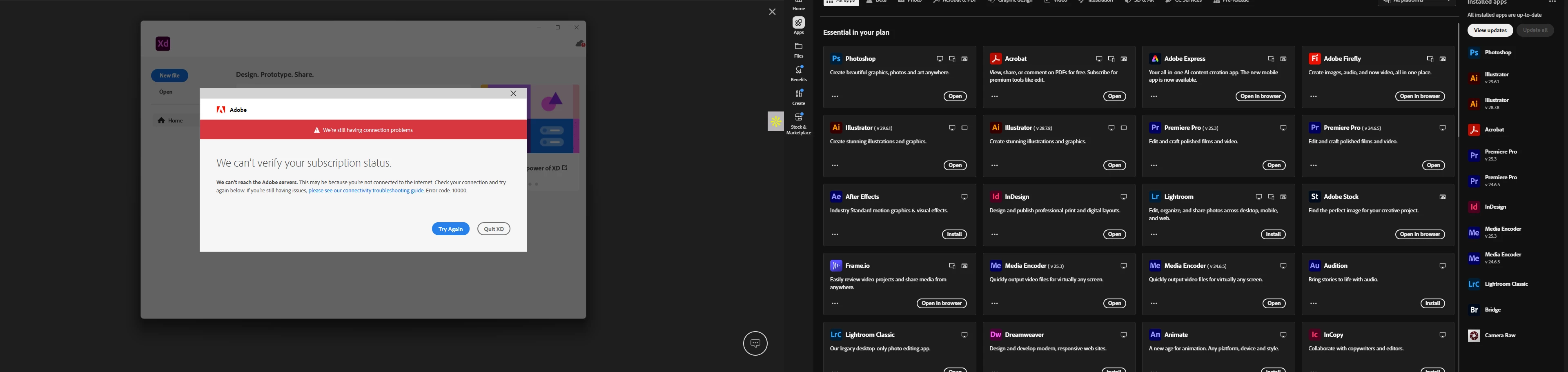 I've my creative cloud on, internet is working fine, why's XD not opening?