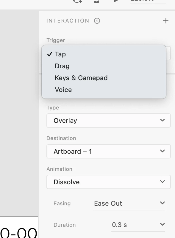 I'm trying to set a hover trigger for an overlay, but there is no hover option in the dropdown?