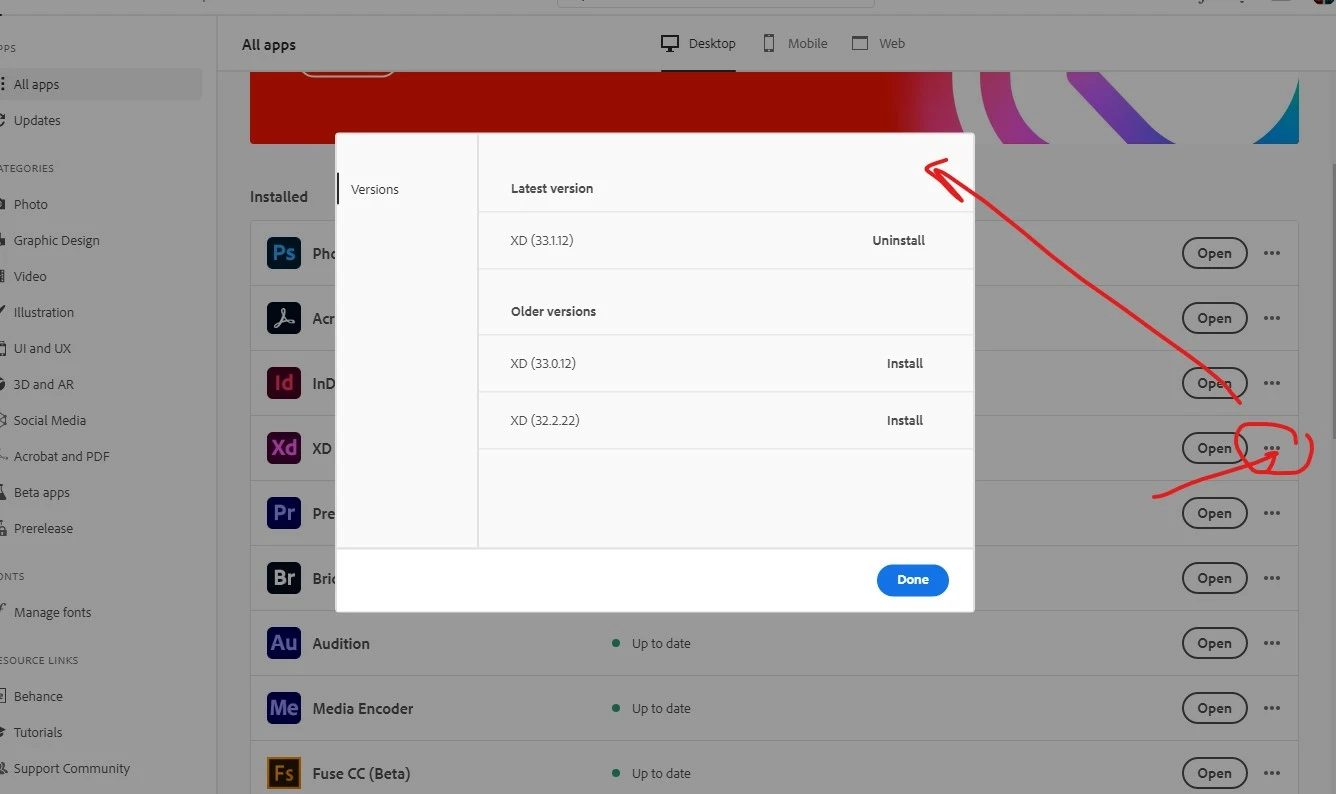 How can I download older versions of Adobe XD?