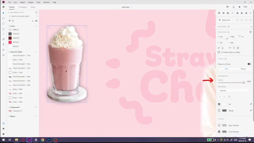 I can't figure out how to change the opacity of dragged and dropped images in XD. How do I do it? I have an SVG that I can change the opacity of but when I try to change the opacity of the image it doesn't do what I want to do.