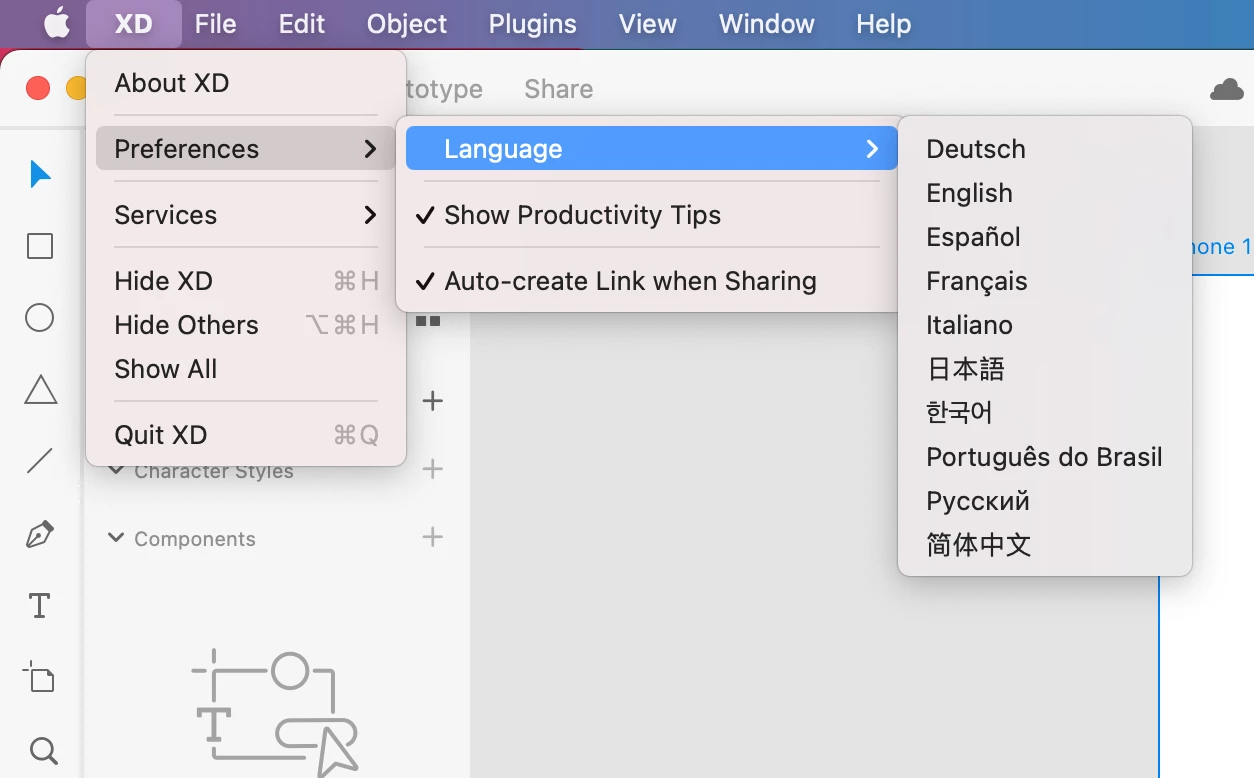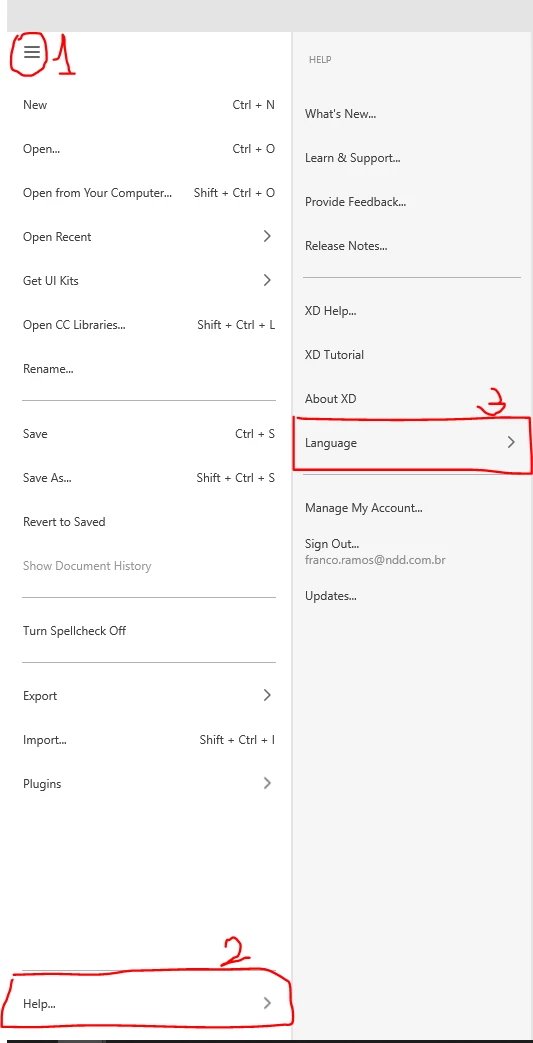 Not more minute ago, i have update Adobe XD, the my problem is that this is, after i have loading, it appears in Chinese or another Asian language.