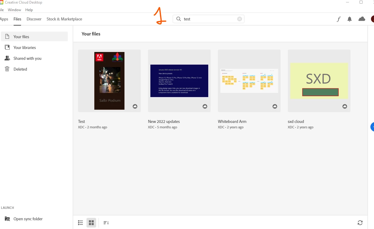 Is there any way that I could search in Adobe XD Cloud documents from the app welcome screen?