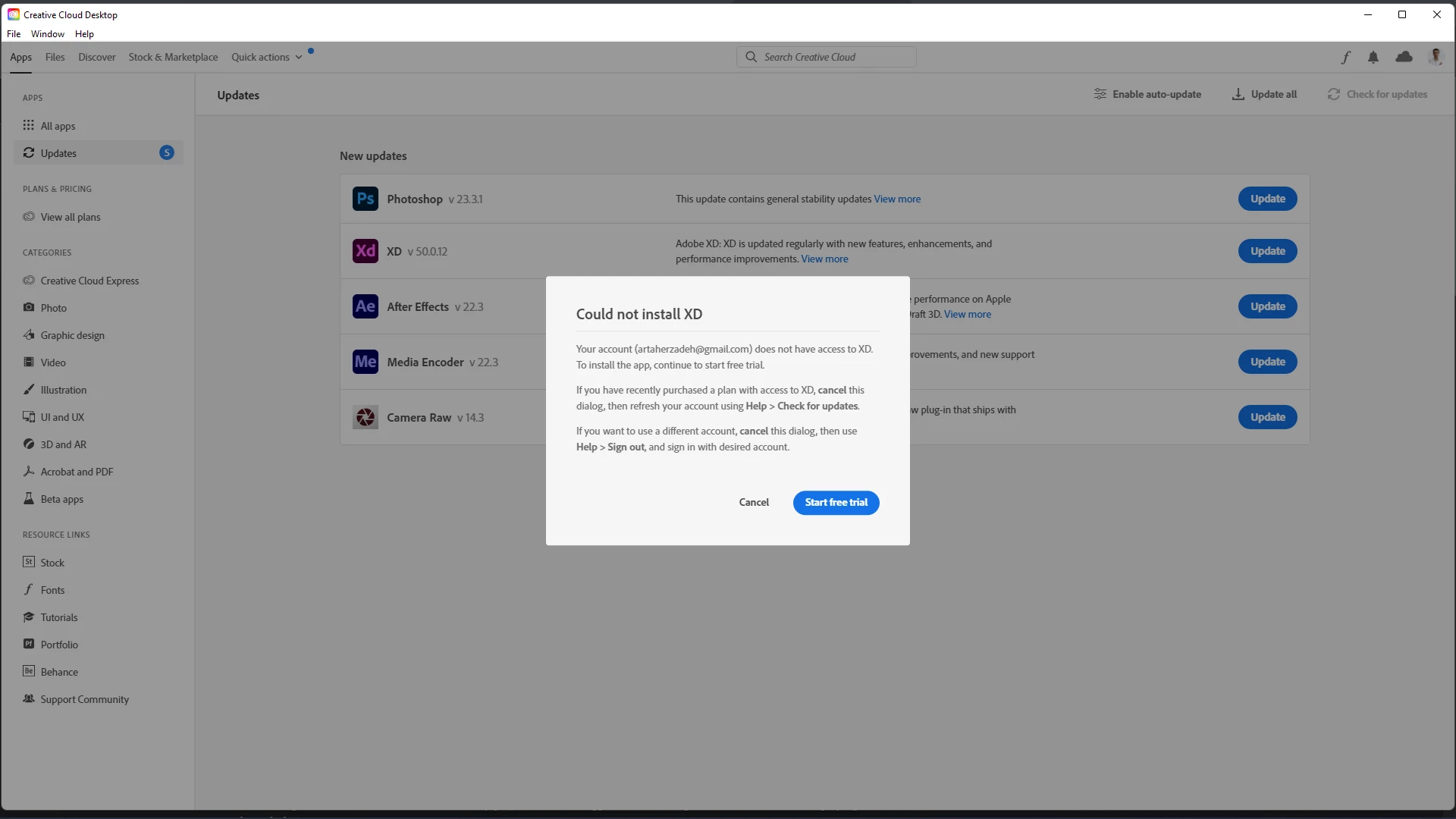 I can't update Adobe XD ( You account does not have access to XD )