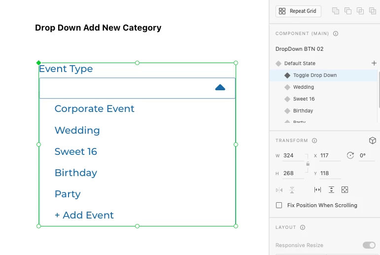 I cant create a 2nd Toggle Component For My Dropdown Menu in XD